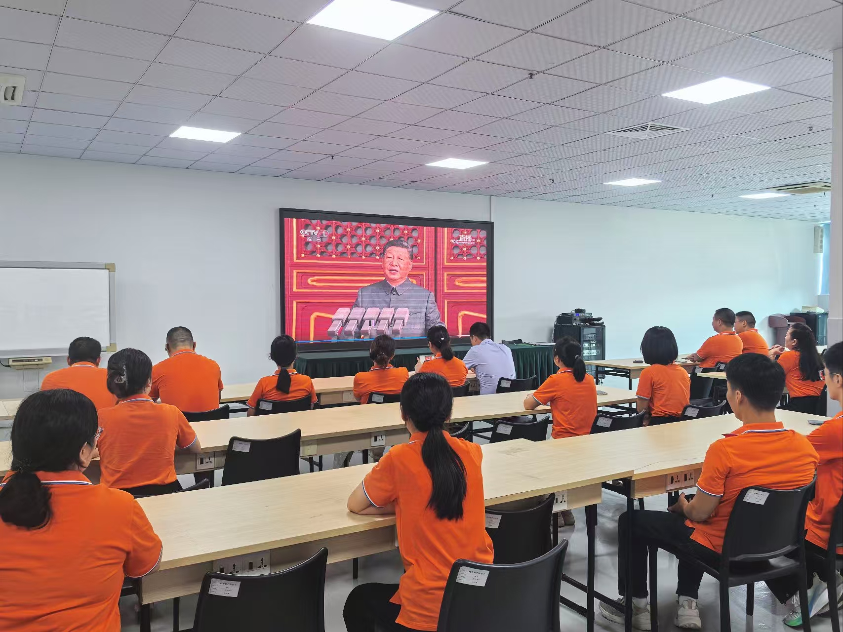 9 月 3 日,紀念中國人民抗日戰爭暨世界反法西斯戰爭勝利 80 周年大會在北京天安門廣場隆重舉行,盛大的閱兵儀式震撼上演。為了讓大家深切感受國家的強大和民族的尊嚴,激發大家的愛國熱情和民族自豪感,恩創組織大家集中觀看了此次閱兵直播。